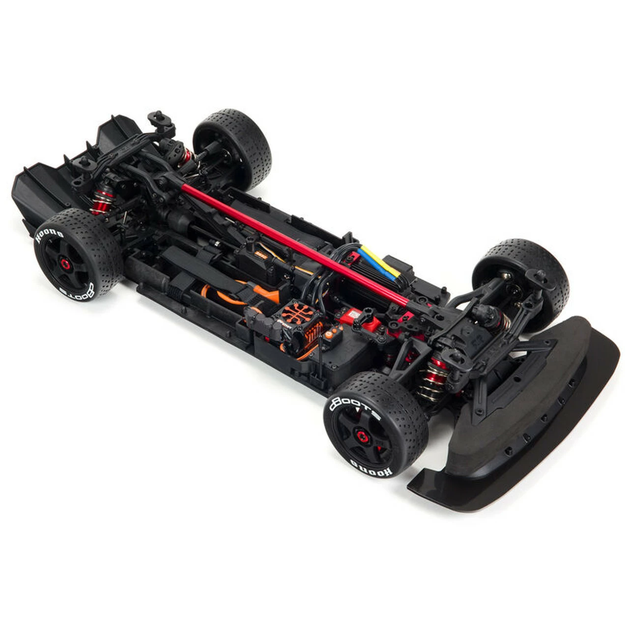 To further enhance the aerodynamics, the chassis includes a full-width front splitter that balances downforce distribution. A rear diffuser increases downforce and grip, enabling you to corner faster and with confidence. Mounted on realistic 5-spoke wheels, the four dBoots® Hoons™ all-road tires keep their grip on the surface to pour on speed or stop on a dime.