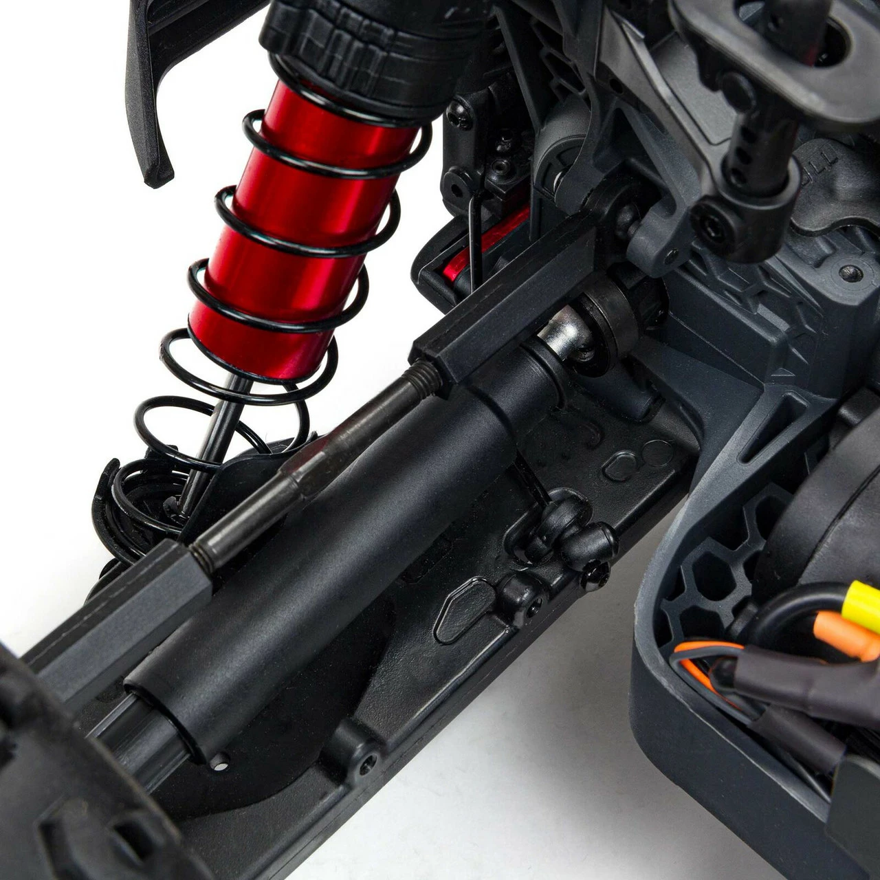 The footprint of this OUTCAST™ 4X4 4S BLX Stunt Truck is 17% larger than the previous model, with higher shock towers, longer shocks, and wider suspension arms for longer, more plush suspension travel. The strength of the transmission has been bolstered with the inclusion of steel gearbox input gears, steel main diff gears and CVD Driveshafts. Upgrades are joined by proven features from before that deliver unstoppable performance in environments ranging from off-road, dirt, and grass to parking lots, paved and asphalt surfaces. These include a strong composite chassis and retained hinge pin plates; protective skid plates in front and rear; steering with more clearance for stones; a castellated slipper pad and sliding gear mesh; and rubber-shielded bearings throughout. The OUTCAST™ 4X4 4S BLX also incorporates the signature ARRMA® easy-access modular design to make routine maintenance fast and simple.