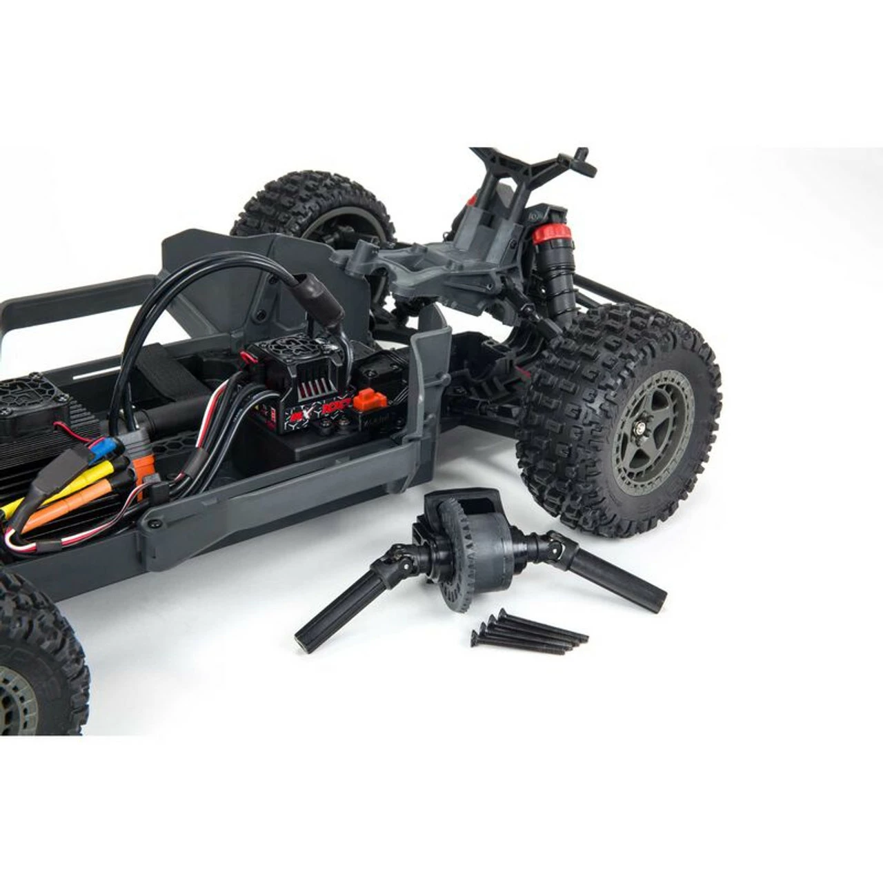 - Two-piece molding screwed to the chassis contains a waterproof receiver box, servo mount, and ESC tray.