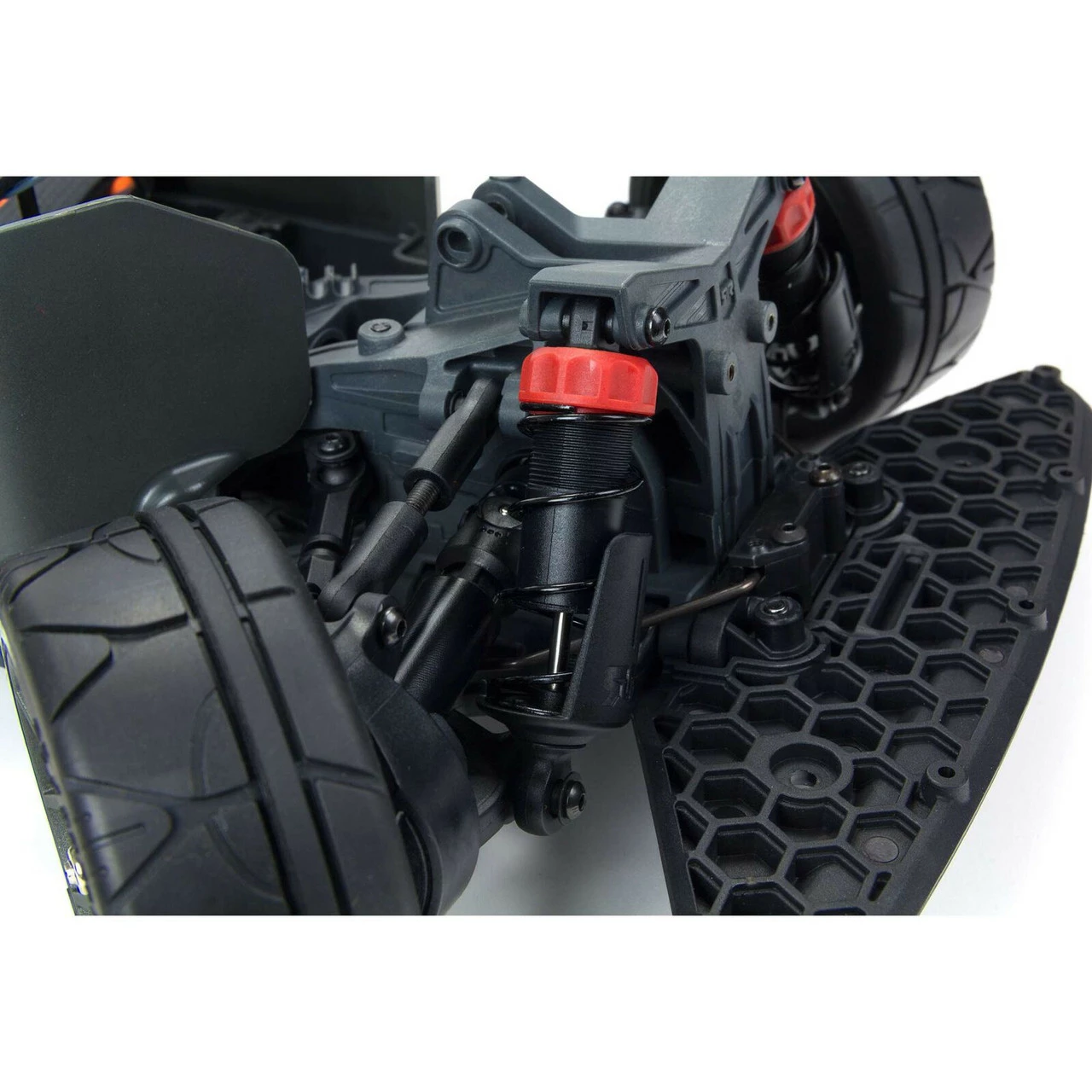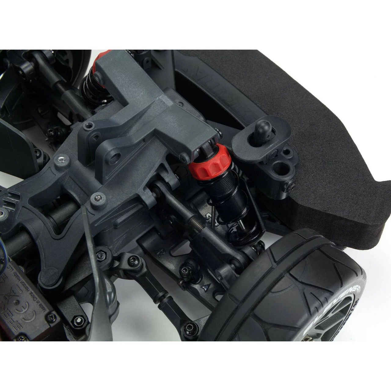 While you’re maximizing the speed potential of the powerful Spektrumâ„¢ Firmaâ„¢ 3660 3900Kv brushless motor, high and low downforce wings on the aerodynamically tuned body help keep your tires glued to the surface. The dBoots® Hoons Elevens vented all-road tires are mounted on tough, gun-metal colored nylon wheels and deliver incredible traction in all surface conditions, while a large rear double diffuser reduces turbulence and drag.