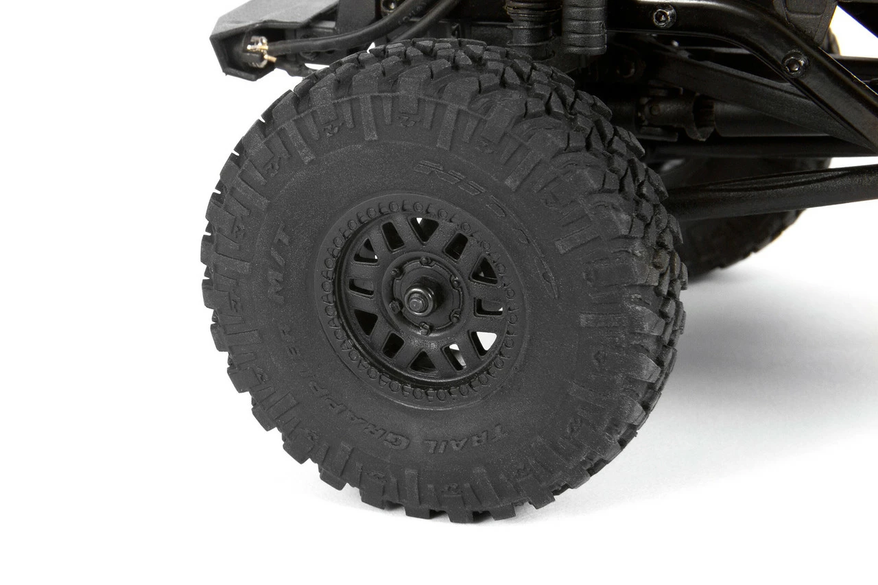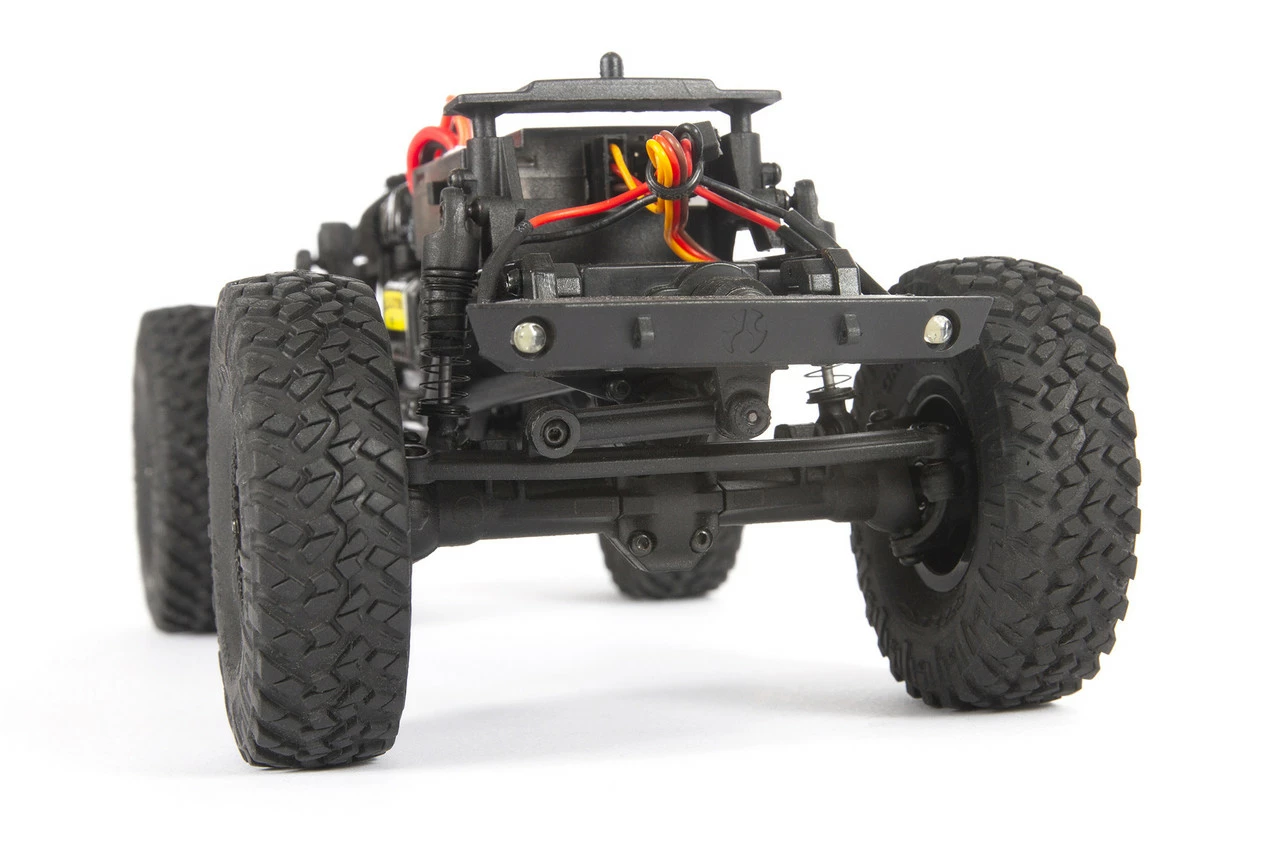 Even at this small scale, the combination of coilover shocks with simulated reservoirs and durable plastic suspension links delivers the crawling performance you’ve known and expect from Axial.