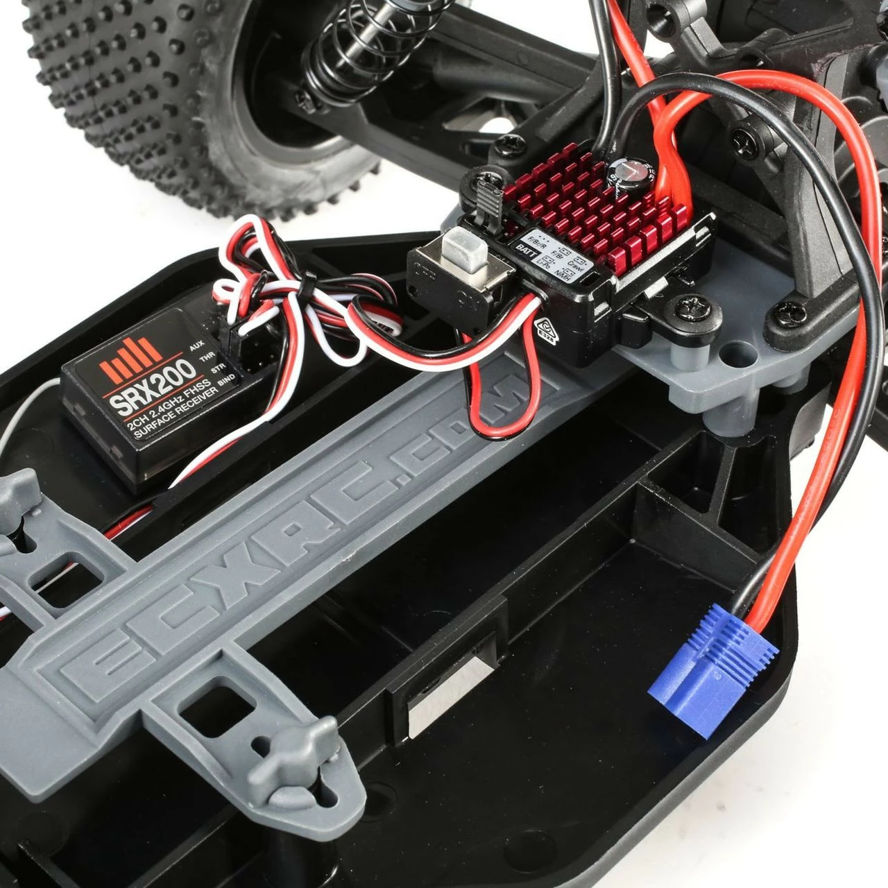 Drive as recklessly as you want without consequences with the ECX® Circuit™ Stadium Truck. This merciless hellion doesn’t back down even in the roughest environments due to waterproof electronics, nylon composite chassis, and well-known ECX durability. It leads the charge with savage features such as Spektrum™ STX2™ 2Ch 2.4GHz FHSS Radio System, Dynamite® 15T brushed motor, and Dynamite® waterproof and LiPo compatible Tazer™ 15T ESC. Pick your power, charge it up and take on all comers.