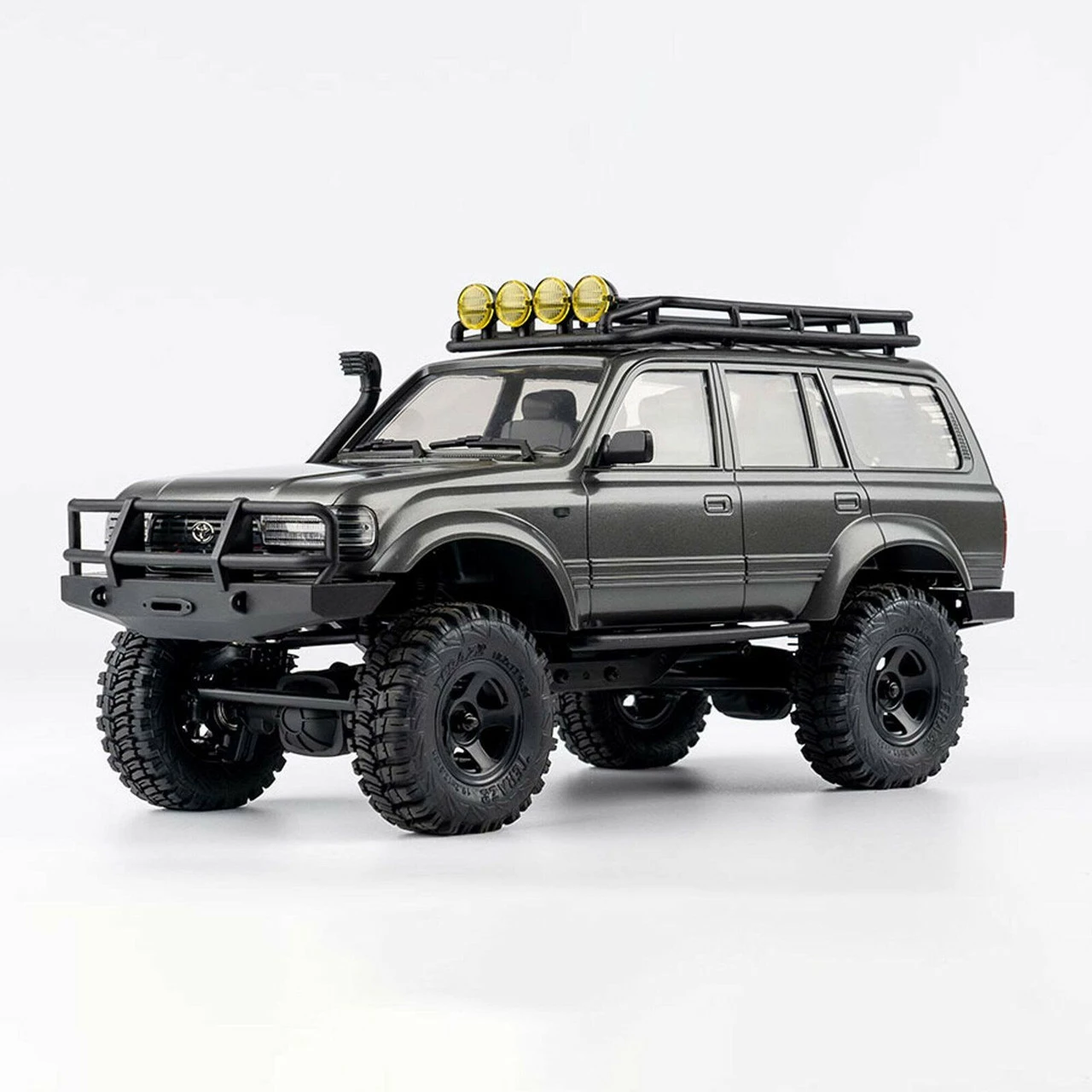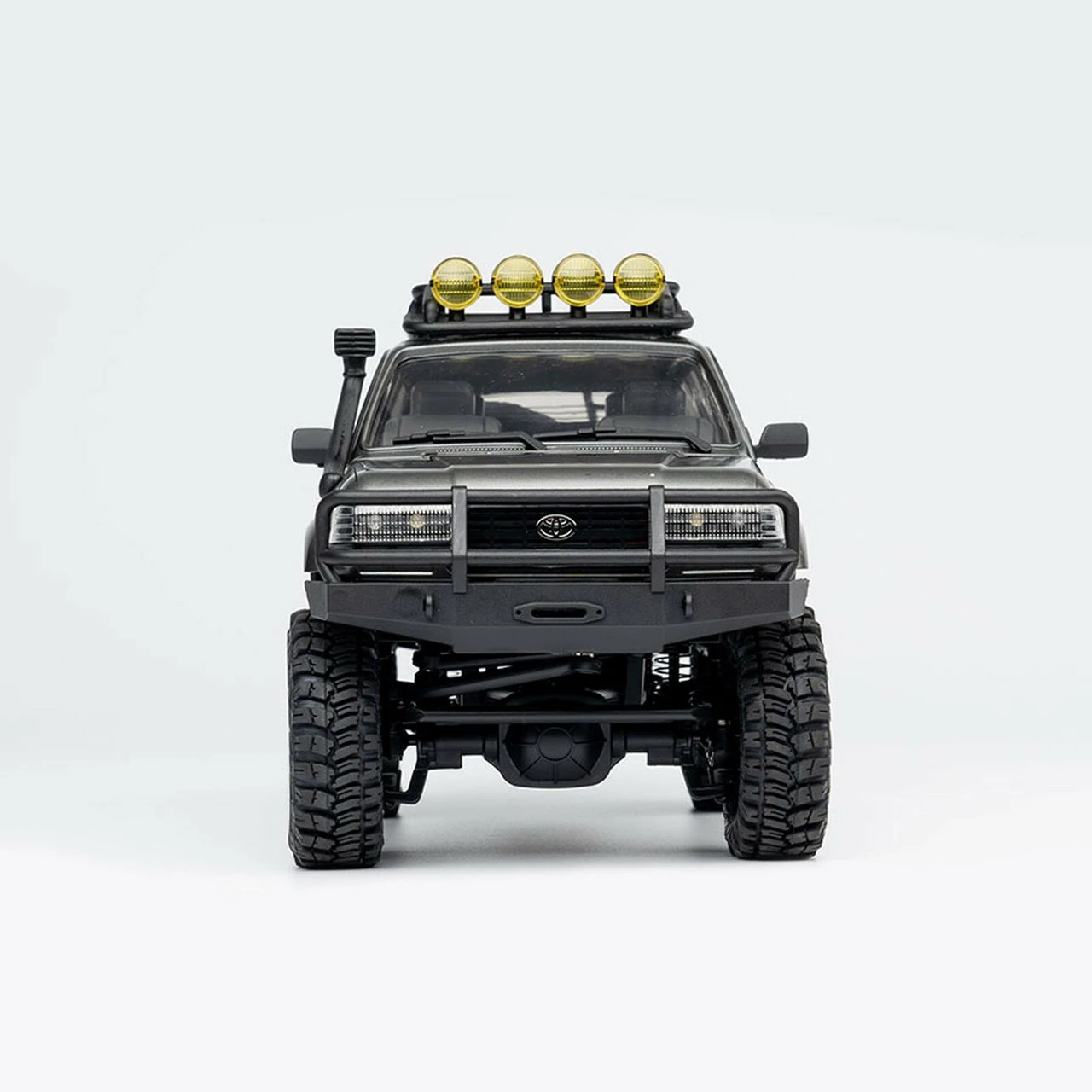 Looking for a mini scaler that’s dependable, detailed and confident on any terrain? Introducing the 1:18 scale Toyota Land Cruiser LC80 RTR! From the period-correct lights, detailed interior, functioning indicators and the vents on the vehicle body, the Land Cruiser was designed to static-model standards. A feature-packed trail-proven chassis drives the Land Cruiser. Aluminum rails provide a rigid platform while a multilink geometry with panhard bar chassis design allows for maximum axle articulation.