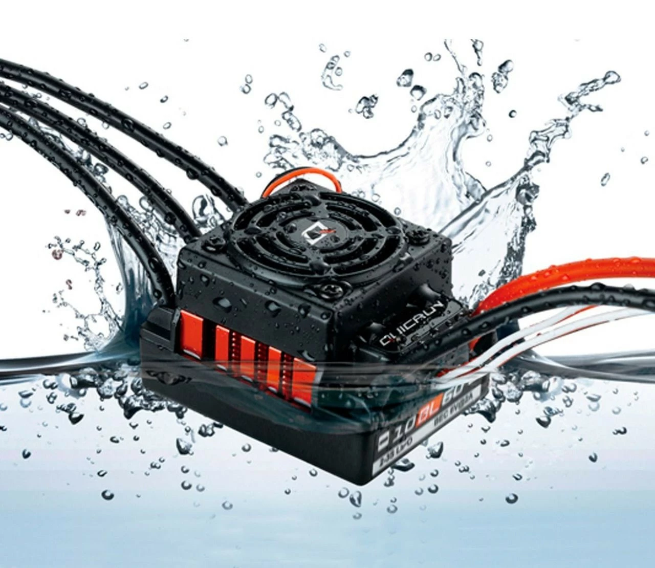 - Water-proof and dust-proof for all-weather races. (Note: please uninstall the cooling fan before using this ESC in water; Clean and dry it soon after the use for avoiding the connectors get rusty.)Â