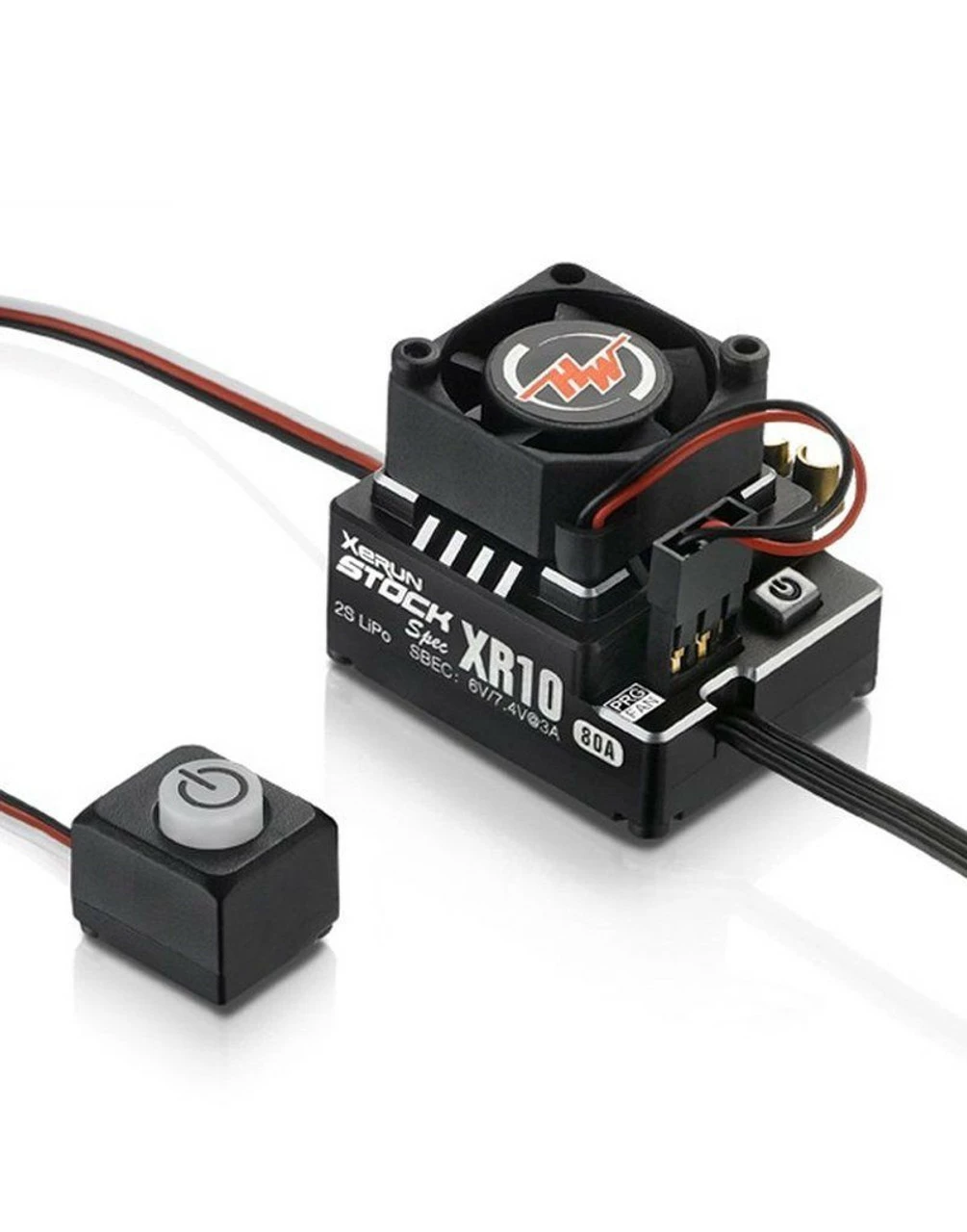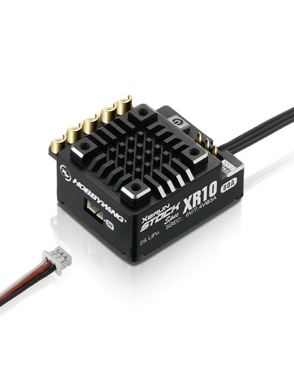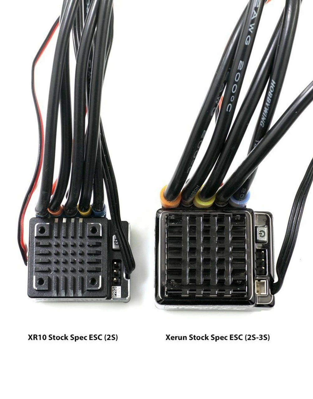 The Black Edition XR10 Stock Spec ESC features a smaller footprint and lighter weight than the older XERUN Stock Spec. It is designed for Stock (Non-Timing) racing with motors down to 13.5T in Off-Road applications and 10.5T motors in On-Road applications. It is designed for 2S use, but can operate with 3S power with the use of a high voltage fan.