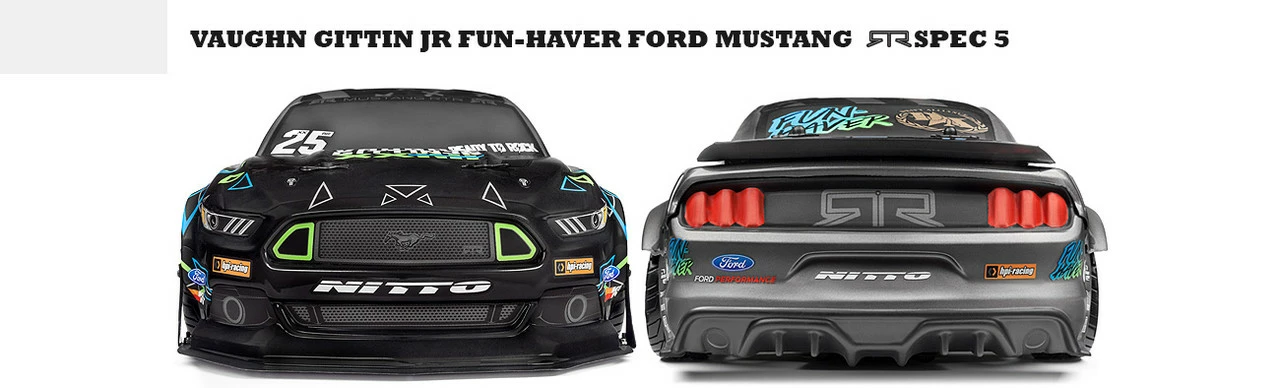 Rounding out the package are official replicas of the actual tires that Vaughn Gittin Jr runs on his RTR Mustang Spec 5: the Nitto NT05! These low-profile drift-specific tires are made for high-performance, realistic drift action at 1/10th scale! With a super stiff, hard plastic construction, HPI drift tires are the ideal way to get drifting quickly and easily. The replica tread pattern looks fantastic, and only gets better with age as the tires wear down, just like the real thing!