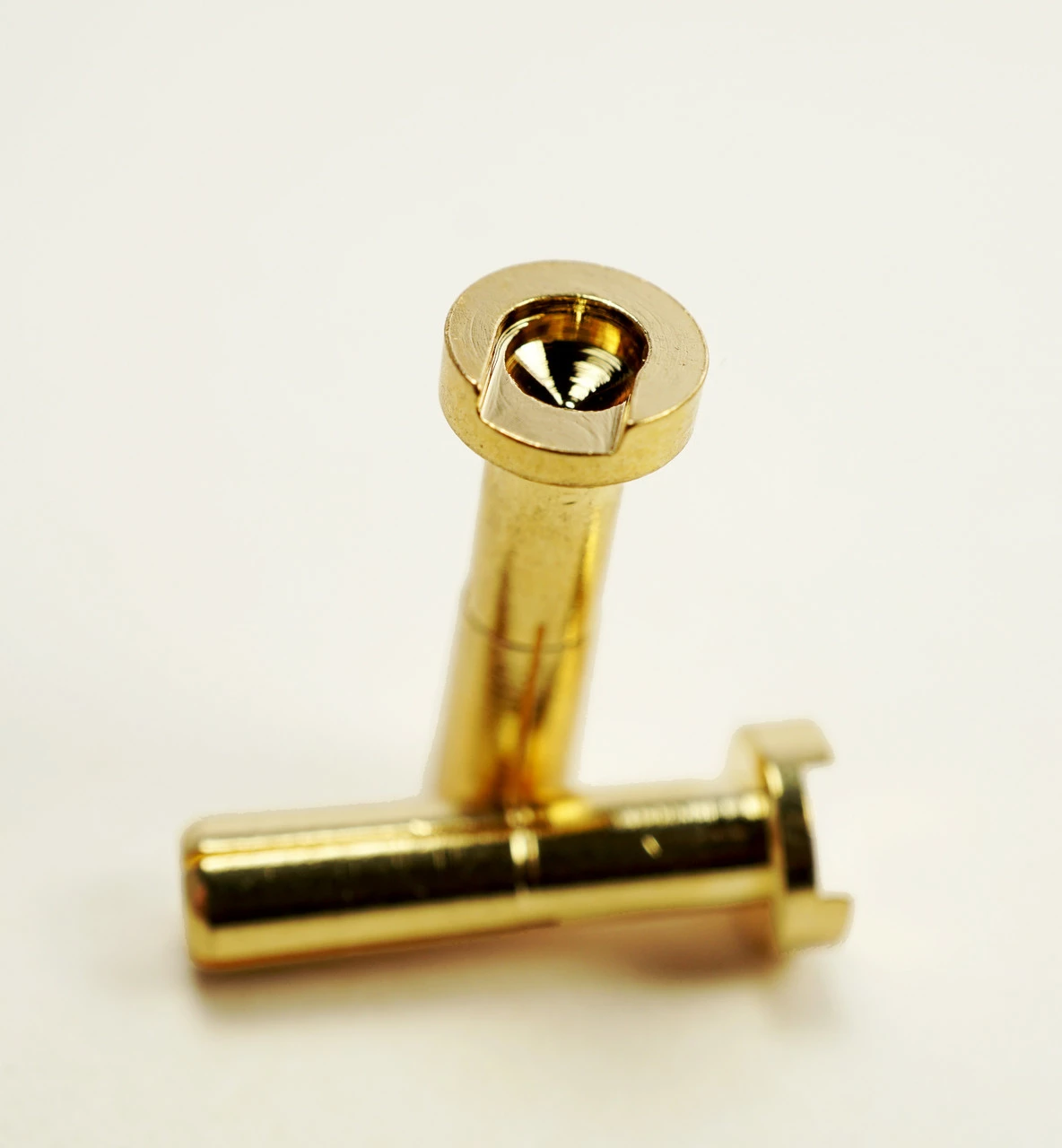 We have designed these 4mm Low Profile Bullet Connectors with pure performance in mind. Each Bullet has a “Step” machined into them where the bullet relief joints are located. This keeps the bullet tighter as the plug/socket each wear from prolonged use. We also added a deeper recess (2.5mm) into the top solder saddle of these bullets to allow for better solder contact to the bullet for a stronger connection and exceptional amperage flow.