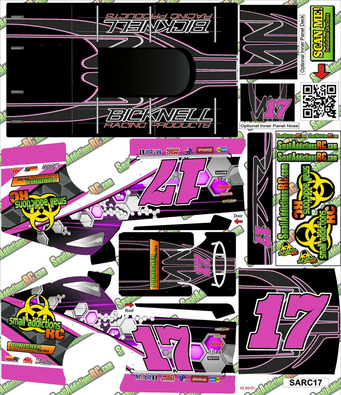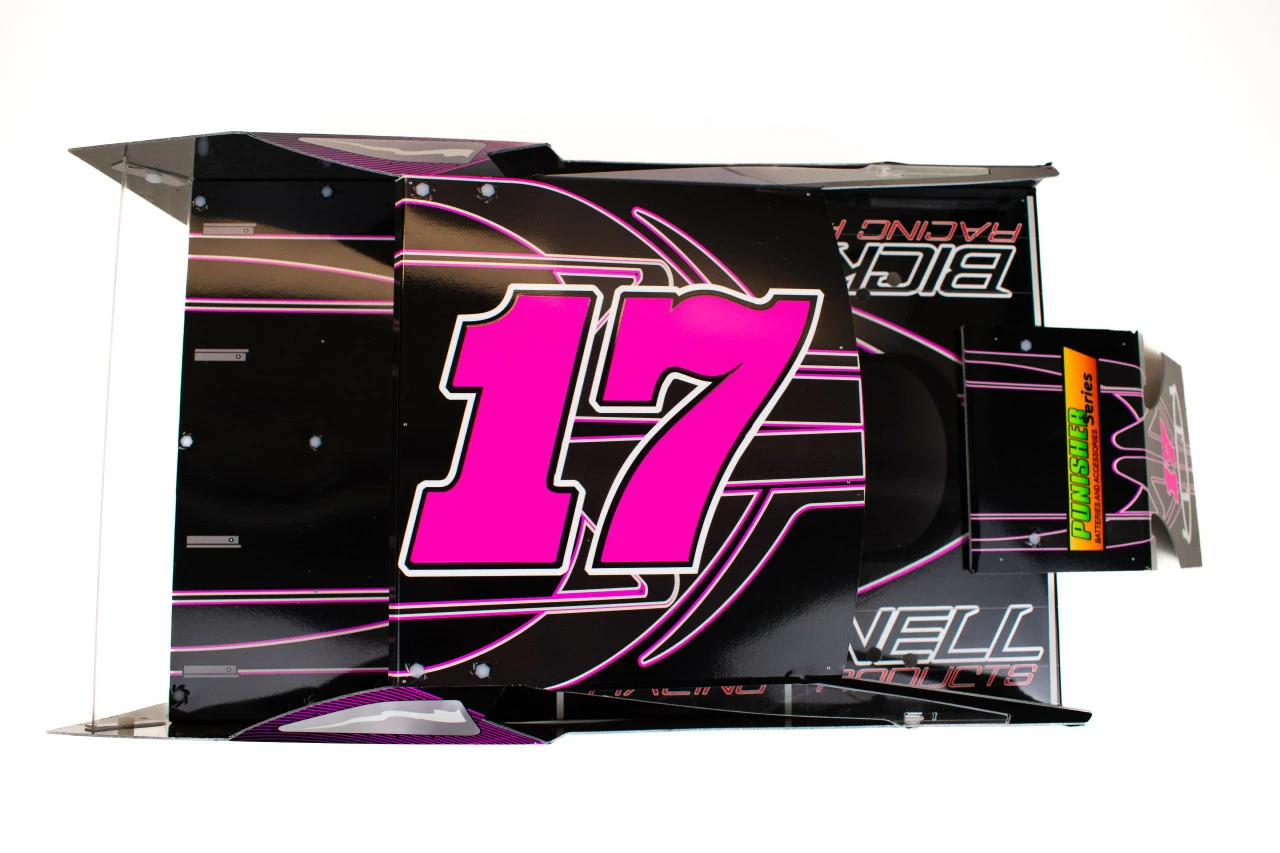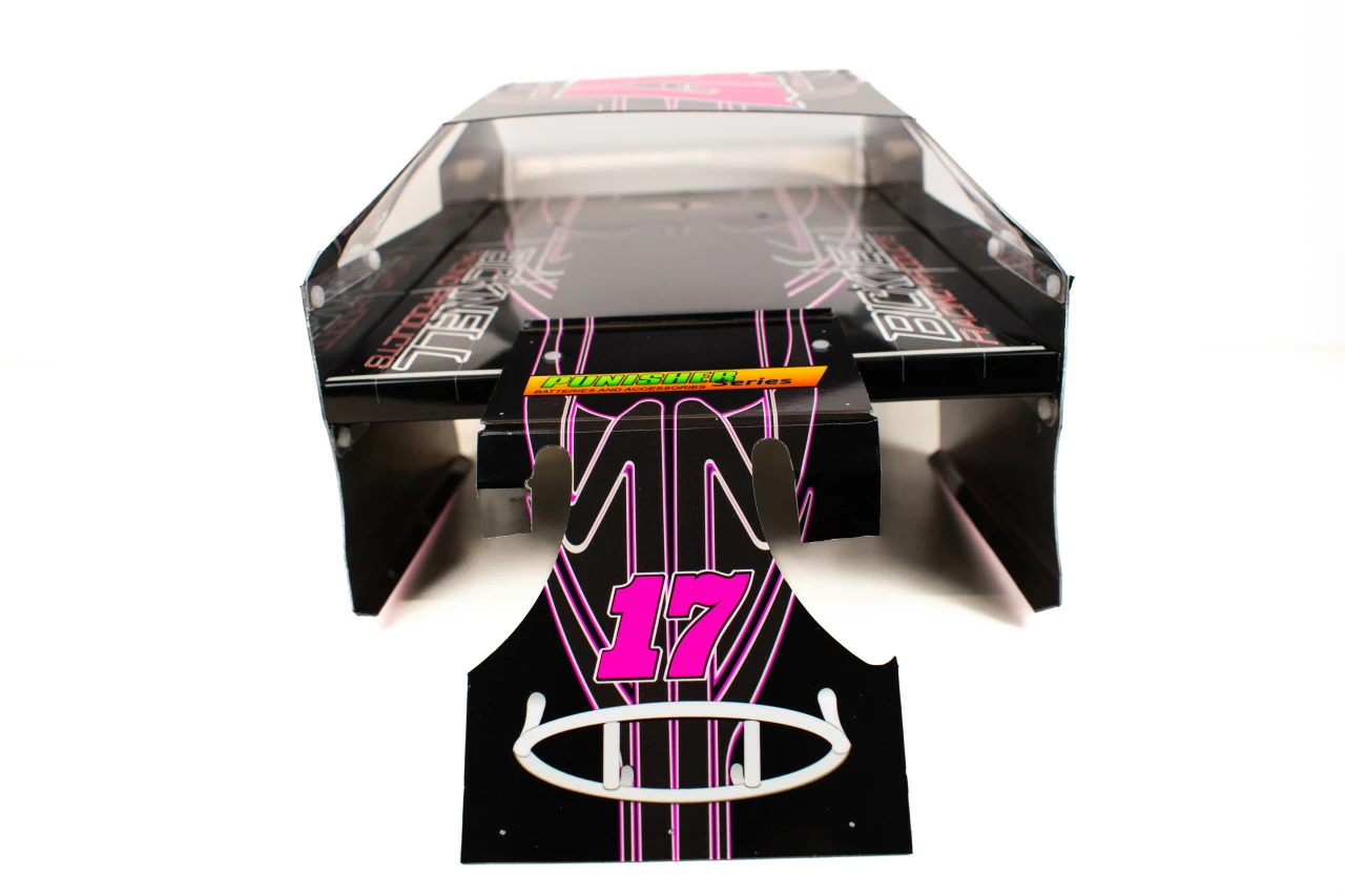 Make your MudBoss stand out from the crowd with this eye pleasing, high quality, custom Body Wrap printed on automotive grade vinyl to fit the 2023 Salvas MudBoss Body. Laminated with 3.5 mm gloss vinyl this wrap is durable yet light weight, pre-cut and slightly oversize to help fit the 2023 Salvas bodies like a glove, and is easy to apply. The number 17 is a bright fluorescent pink.