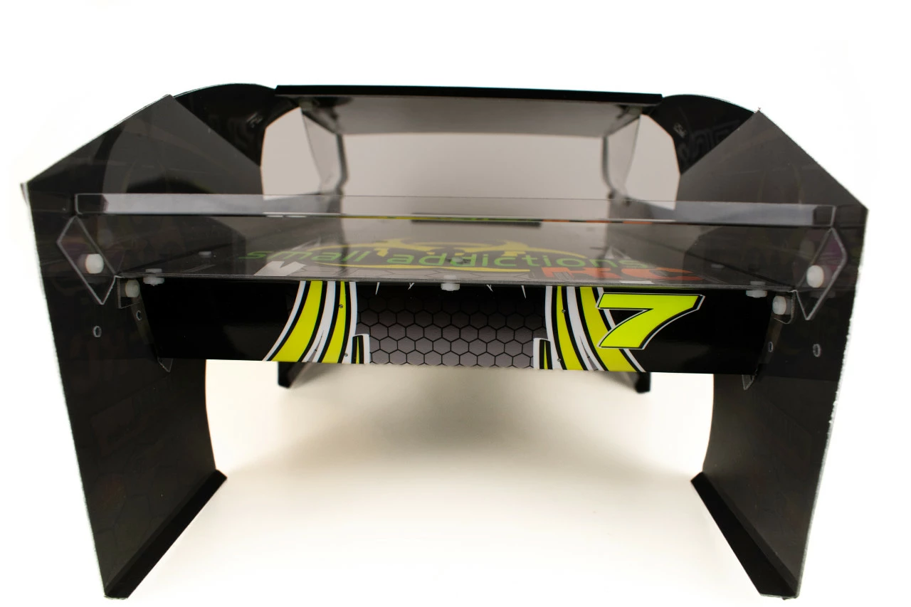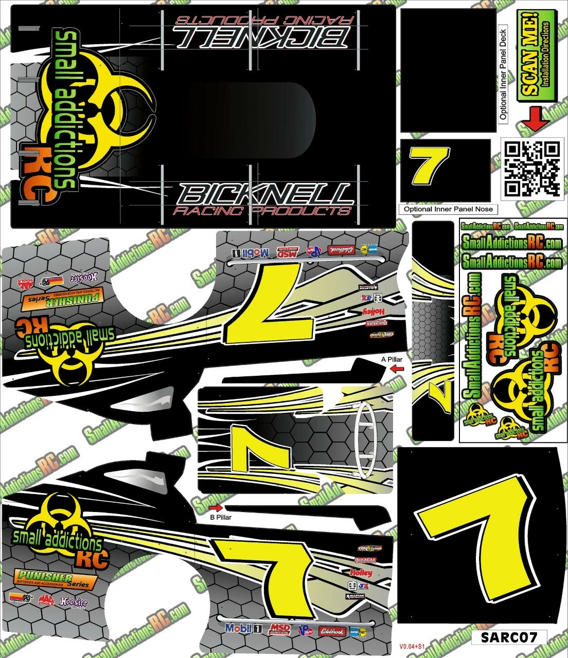 Make your MudBoss stand out from the crowd with this eye pleasing, high quality, custom Body Wrap printed on automotive grade vinyl to fit the Salvas Style MudBoss Body. Laminated with 3.5 mm gloss vinyl this wrap is durable yet light weight, pre-cut and slightly oversize to help fit the Salvas Style bodies like a glove, and is easy to apply. The number 7 is a bright fluorescent yellow.