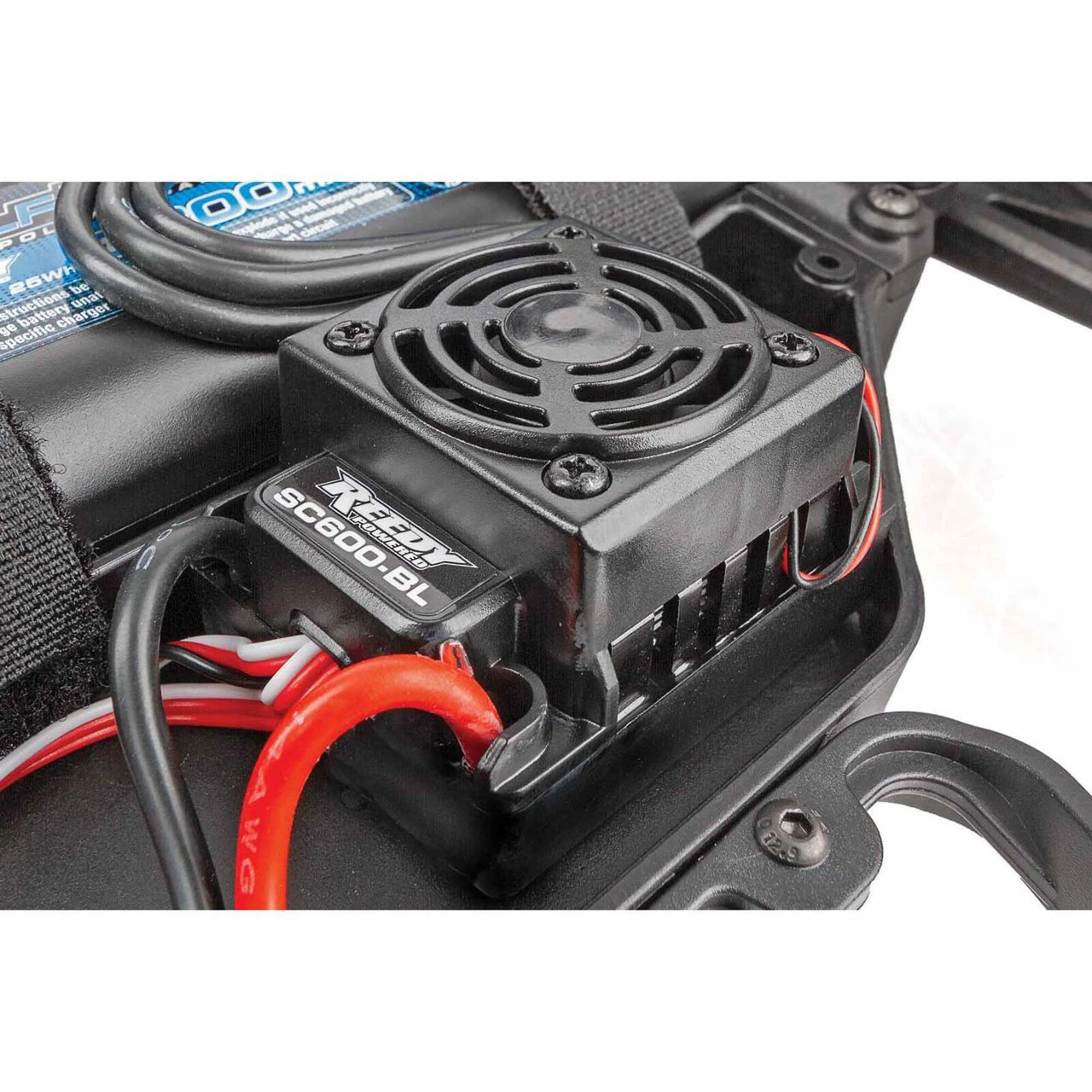 - Low center-of-gravity molded composite chassis with hook-and-loop battery straps that accommodate both NiMH and 2/3S LiPo battery packs