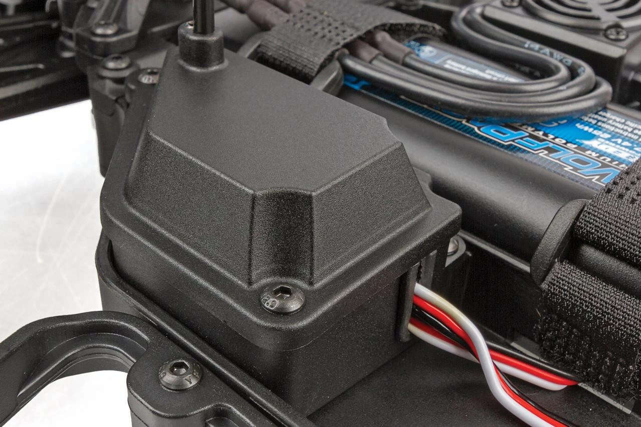 - Low center-of-gravity molded composite chassis with hook-and-loop battery straps that accommodate both NiMH and 2/3S LiPo battery packs