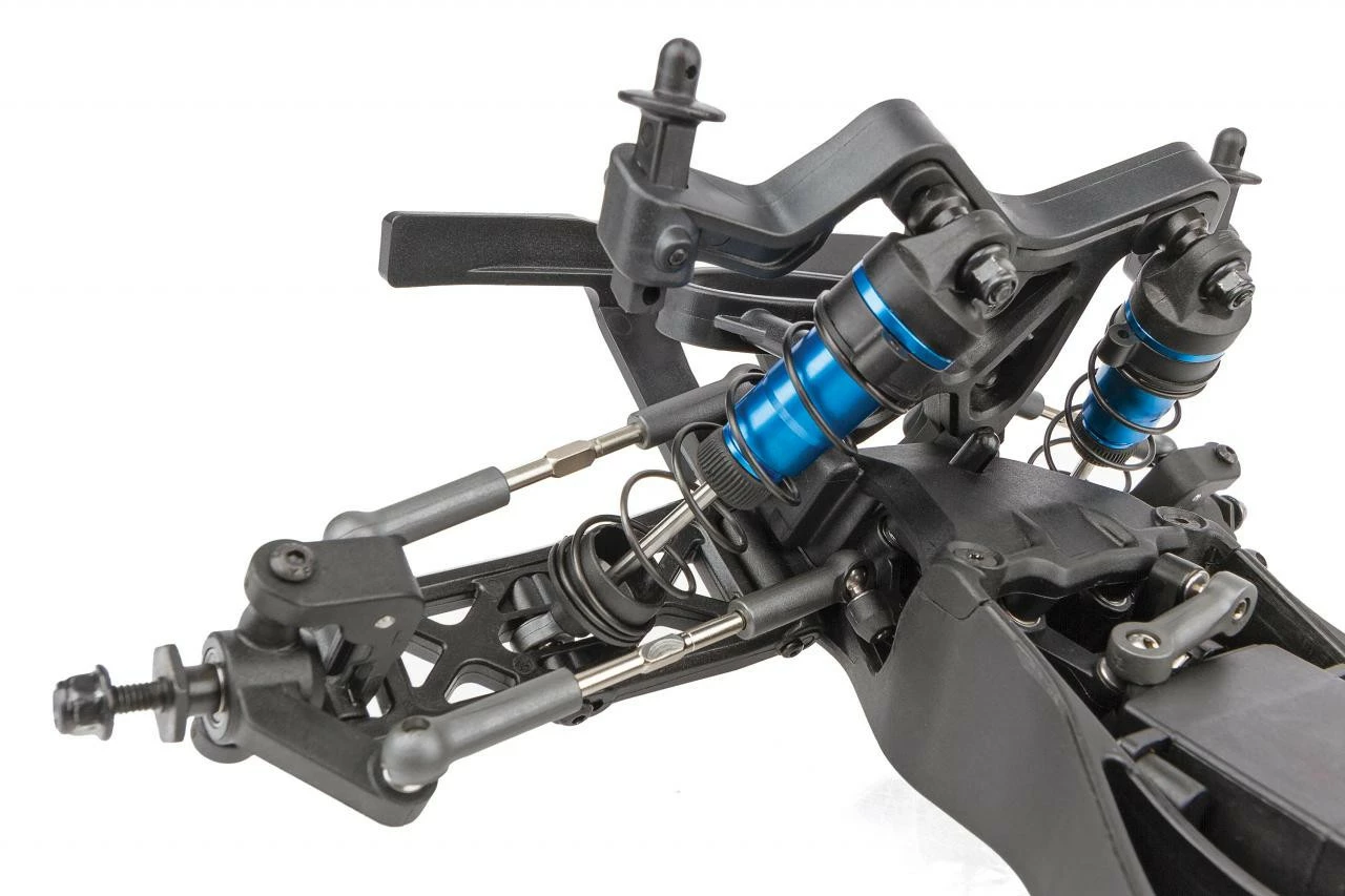 - Low center-of-gravity molded composite chassis with hook-and-loop battery straps that accommodate both NiMH and 2/3S LiPo battery packs