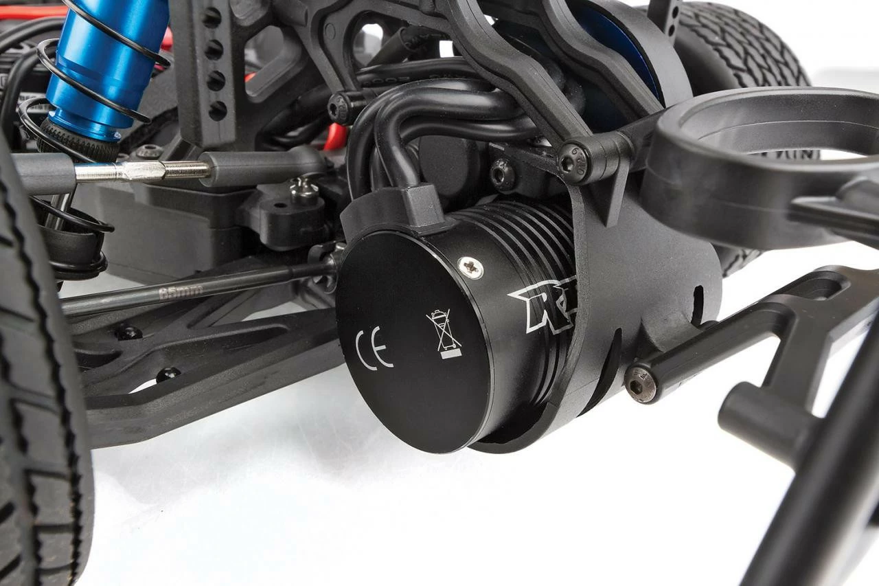 The SR10 Dirt Oval Race Car is based on the 9-time ROAR Short Course National Championship winning trucks, Featuring a water-resistant high-power Reedy brushless speed control and 3300kV brushless motor, a 2.4GHz 2-channel radio system as well as our ALL NEW DVC (Dynamic Vehicle Control) receiver unit with built-in adjustable digital gyro. Add to that a Reedy metal-gear digital high-torque servo and a water-resistant enclosed receiver box. All of this packaged together in an outstanding factory-finished body with integrated rear spoiler. And to keep you sticking to the terrain, this SR10 beast will keep you cornering with the included high-grip street stock-inspired treaded tires and lightweight wheels.