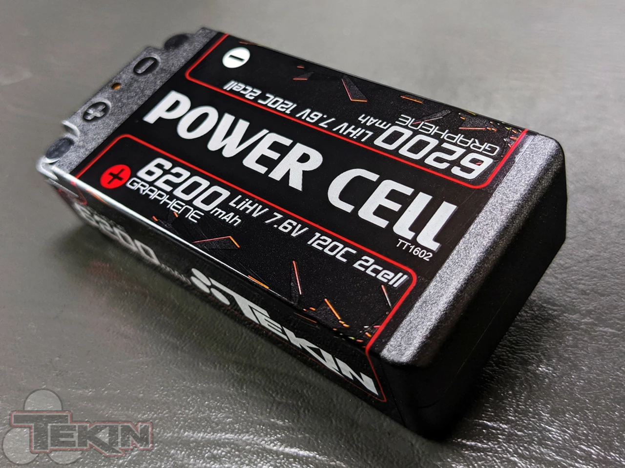 Tekin Power Cell 2S Hard Case Shorty 120C Graphene LiPo batteries are High Voltage capable, increasing both the energy density of the cells and the end voltage. Charging your packs up to 4.35V per cell yields more punch due to the higher voltage as well as increased pack capacity, giving your 1:10 buggy, truck or car longer run time. Experience more power and less fade during a run with HV POWER CELL battery packs.