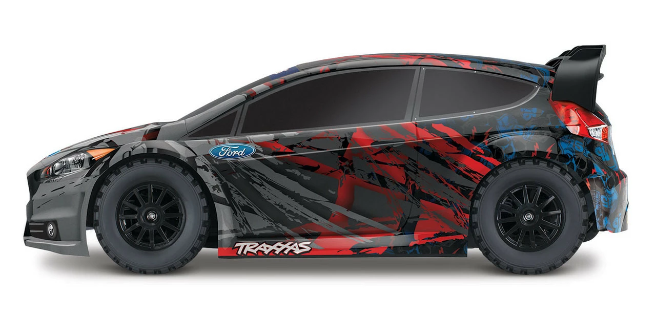 The Fiesta ST Rally is specially tuned with a low center of gravity (Low-CG) chassis and oil-filled Ultra ShocksTM to be agile on the track. When the pavement ends, its full-time 4WD, long-travel suspension, and rally-bred tires dig in for ultra-fast bumper-to-bumper racing action. The powerful Titan 550 motor muscles you to the front of the pack and waterproof electronics allow authentic all-weather racing.