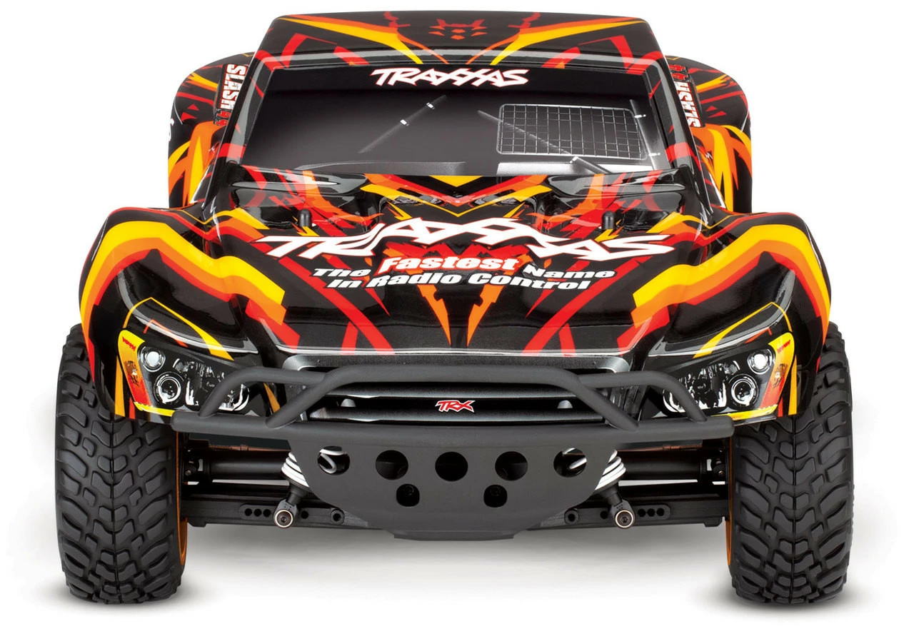 Slash 4X4 comes fully-assembled and Ready-To-Race® with the TQ 2.4GHz radio system, XL-5 electronic speed control, Titan 12T motor, painted and decaled body, pre-glued tires, and Quick Start Guide. Traxxas backs the Slash 4X4 and all of our products with top-notch support that is second to none. A staff of skilled representatives is on-hand to answer your questions via phone, website, or e-mail. Unmatched parts support allows Slash 4X4 to be serviced with parts and support from thousands of hobby dealers worldwide. Your investment is also protected by the Traxxas Lifetime Electronics Warranty. Traxxas goes the extra mile to ensure that your RC experience is easy and fun and fast!
