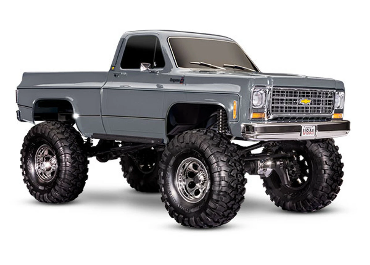 Traxxas elevates scale adventure with the lifted TRX-4® Chevrolet® K10 High Trail Edition. Thanks to its factory-installed Long Arm Lift Kit and oversize tires, the highly detailed K10 replica body stands over an inch taller than our standard TRX-4. The K10’s extended wheelbase further enhances the TRX-4’s already legendary off-road capability for even more fun on the trail. The TRX-4 High Trail Edition is the perfect vehicle for the driver who wants it all: extreme all-terrain capability, stunning scale looks, and Traxxas-Tough™ durability.