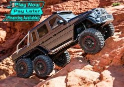 The Mercedes-Benz G 63 AMG 6×6 represents a singular vision to create the boldest and toughest all-terrain vehicle ever. Traxxas captures the spirit and no-compromise approach of the Mercedes-Benz G 63 AMG 6×6 with an officially licensed detailed scale replica built on the proven TRX-4® platform. Six drive wheels, three T-Lock™ remote-locking differentials, portal axles, high/low transmission, 6 aluminum long-travel shocks, and a stunningly accurate body with brilliant LED lighting make this the most advanced and capable RC crawler ever to hit the trail.