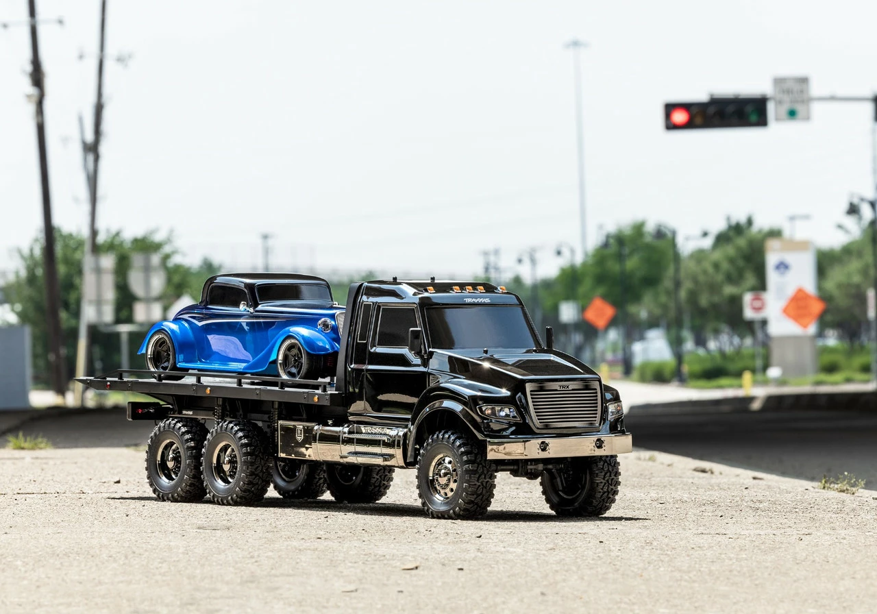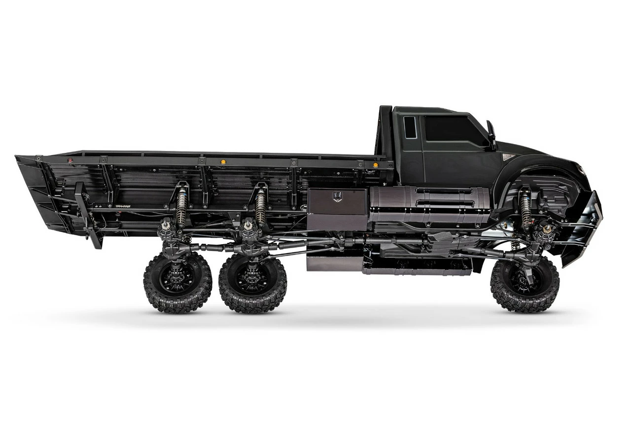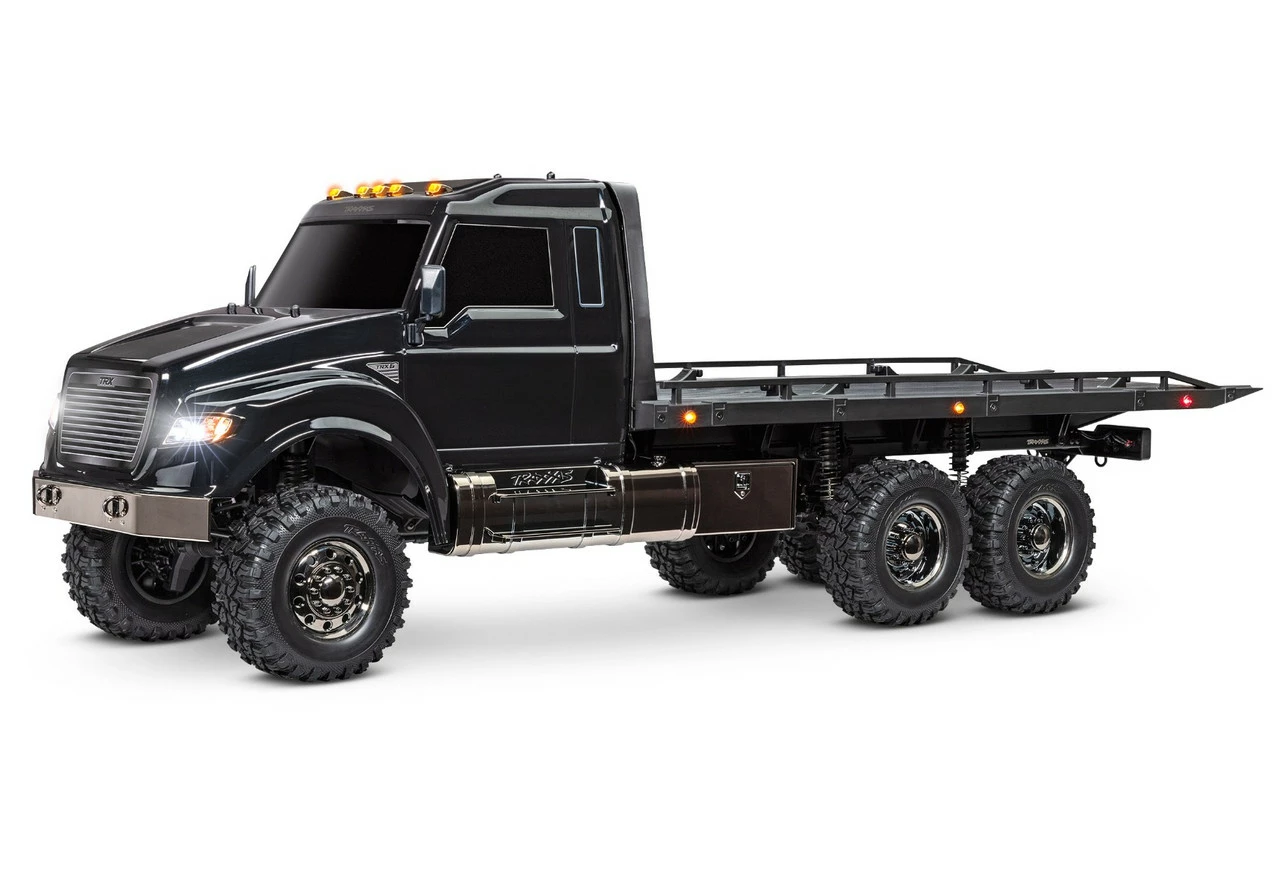 One look at the new TRX-6® Ultimate RC Hauler and you’ll know this truck means business. Based on the hugely capable TRX-6 platform, the RC Hauler is the biggest and baddest rig in the TRX lineup. The tough looks are backed up with even tougher performance. The rear bed features adjustable wheel chocks and tie-down bands to haul and display 4-Tec® models with style. A highly detailed LED lighting system and black-over-black chrome body accessories give the Hauler a tough, menacing look. The Ultimate RC Hauler is built Traxxas Tough™ with portal axles, high-low transmission, and T-Lock™ remote locking differentials. When you’re ready for big-scale RC fun, nothing comes close to the Traxxas Ultimate RC Hauler.
