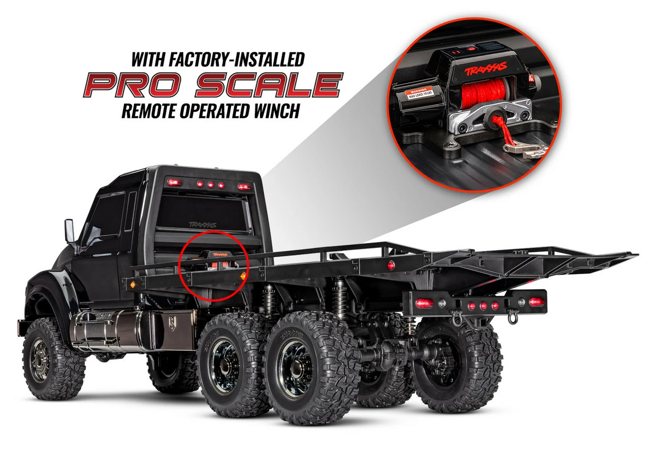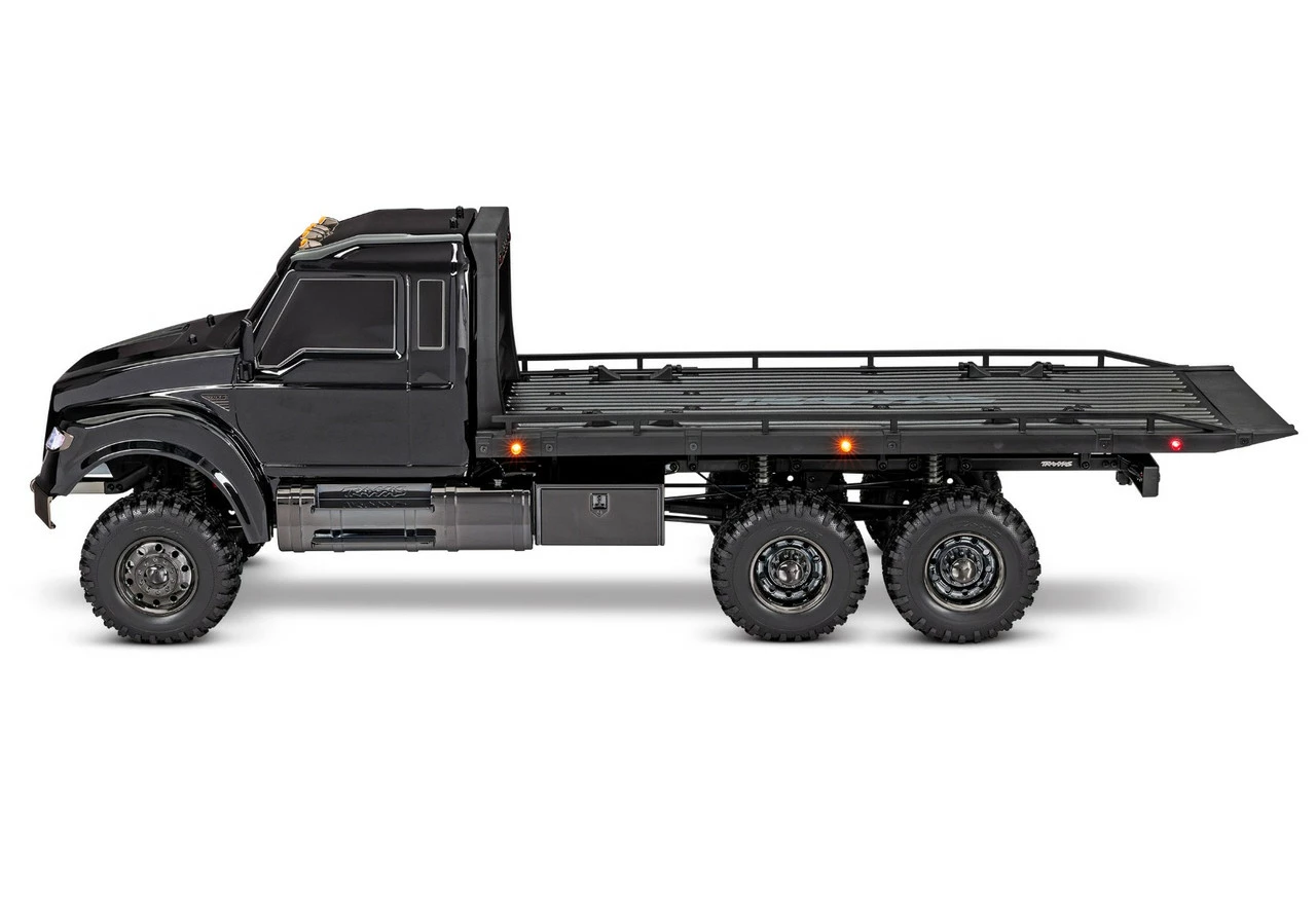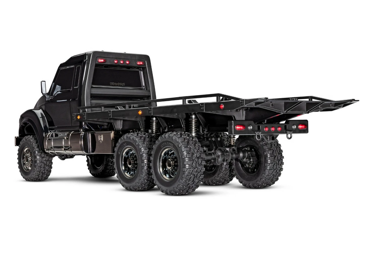 One look at the new TRX-6® Ultimate RC Hauler and you’ll know this truck means business. Based on the hugely capable TRX-6 platform, the RC Hauler is the biggest and baddest rig in the TRX lineup. The tough looks are backed up with even tougher performance. The rear bed features adjustable wheel chocks and tie-down bands to haul and display 4-Tec® models with style. A highly detailed LED lighting system and black-over-black chrome body accessories give the Hauler a tough, menacing look. The Ultimate RC Hauler is built Traxxas Tough™ with portal axles, high-low transmission, and T-Lock™ remote locking differentials. When you’re ready for big-scale RC fun, nothing comes close to the Traxxas Ultimate RC Hauler.