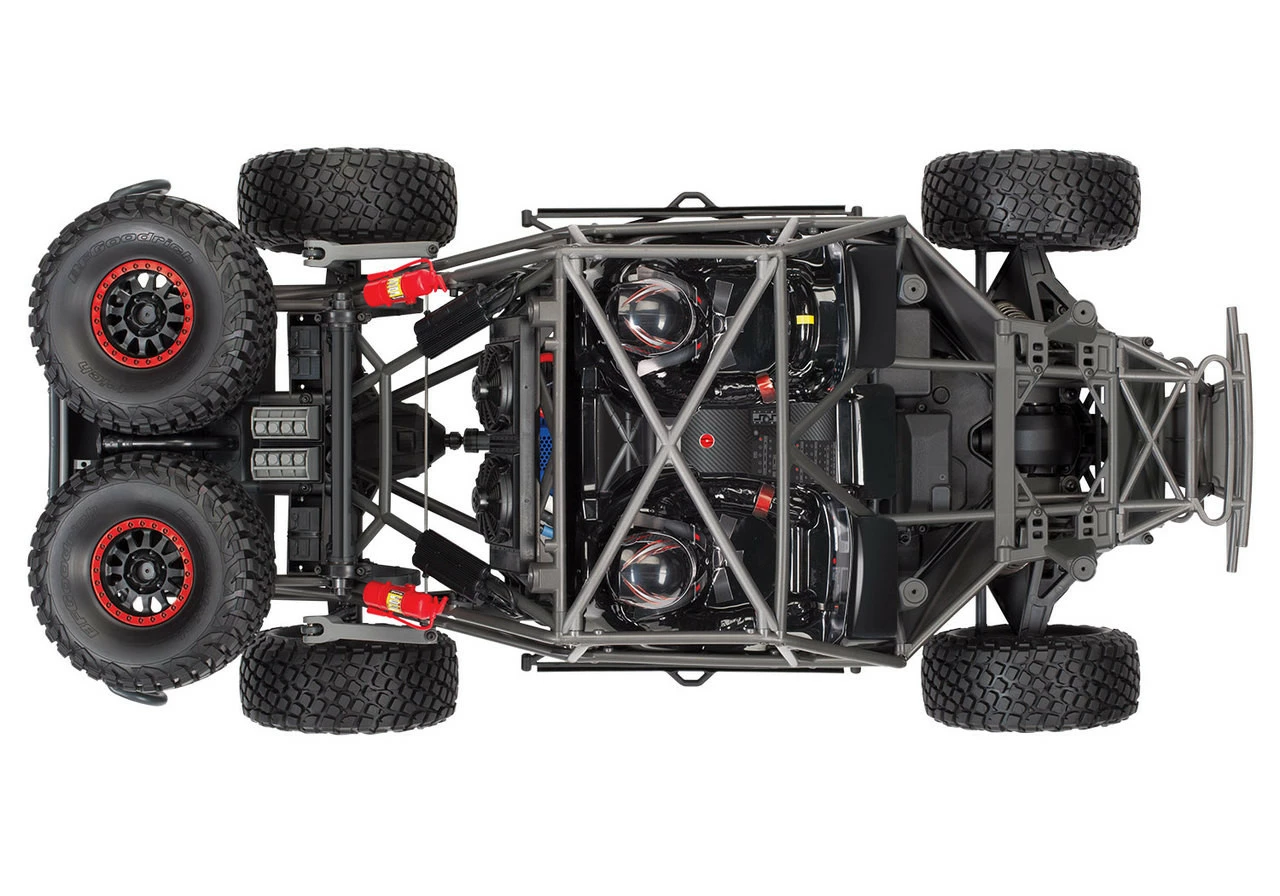 The Traxxas Unlimited Desert Racer Race Truck is engineered on an authentic, true to scale 4-wheel drive desert race truck chassis. The 4-link solid rear axle design provides huge suspension travel with authentic driving dynamics. From the cantilever sway bars to the 8 GTR shocks, Traxxas has accurately reproduced a true unlimited desert race chassis in both form and function.