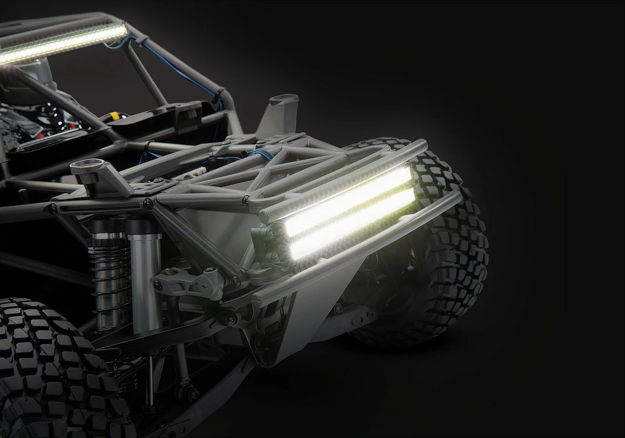 Pro-Scale is a Traxxas innovation that captures true-scale realism and combines it with extreme 6s LiPo power and 50+ mph performance. The Traxxas Unlimited Desert Racer faithfully captures the look and feel of Trophy Trucks and Unlimited Trick Trucks as they charge hard across the desert at full speed.Â